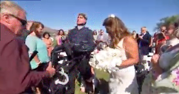 "I kind of thought that I would've been looking at [my fiance] when I was walking down the aisle, but I couldn't look at anything but my dad," Lindsay told Today.com. "I was just amazed he was able to get in his device and stand up. The sun was in his eyes, and I was just thinking that he's done so much to be here and worked so hard that I just started bawling."
