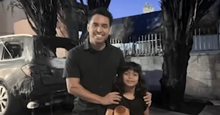 The paramedic, Richard Recinos, saw the blaze while returning home from spending the holiday with his family. Then, he saw a girl standing on the porch just feet away from the fire. He immediately ran and threw her over his shoulder, bringing her to safety across the street, where a woman comforted her.