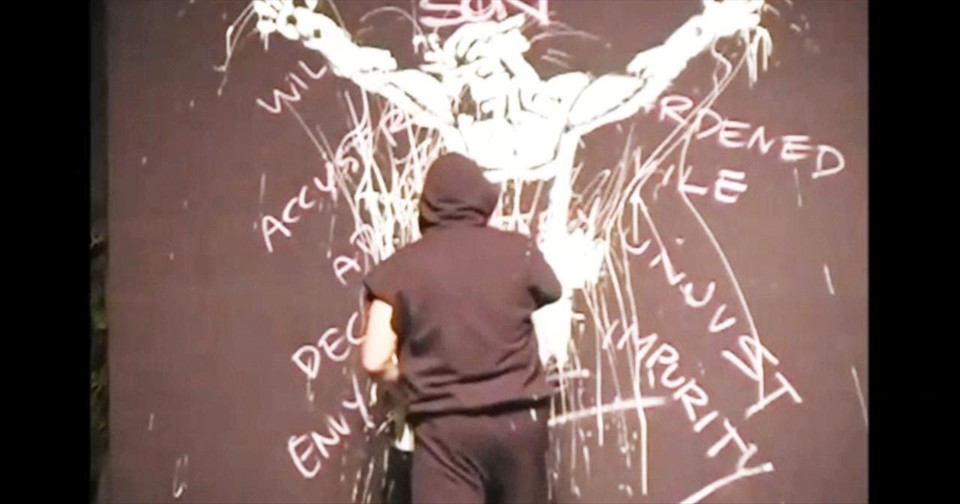 A Painting Performance of The Crucifixion That Will Give You Chills!