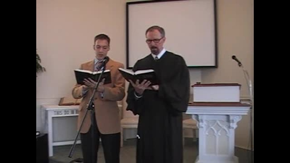 Pastor MacLaren and Mr. Joseph Waggoner sing a selection of hymns (#419-420) from the "Sing to the Lord" Hymnal, during the Sunday Worship Service of 11/14/2010 at First Presbyterian Church (OPC) in Perkasie, PA (USA; www.firstchurchopc.org). Mrs. Rebekah
