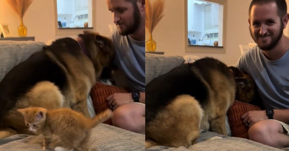 German Shepherd's Fearful Reaction To Sweet, Tiny Kitten Will Leave You in Stitches