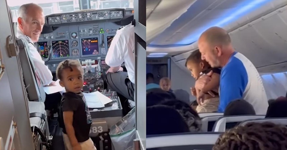 To give the mother a little time to herself, the gentleman took the child to the cockpit to meet the pilots. The unidentified man also carried the young man around the plane, giving him a tour of the aircraft.