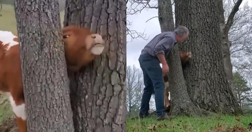 It’s moments like this when you need a little human intervention because the good Lord told us to rule over the works of His hands (Psalms 8:6-9). Enter the man who spotted the distressed calf, head stuck, body wiggling, and obviously not understanding how trees can be so unforgiving. The poor thing was trapped and in serious danger—until this kind man arrived like a hero straight out of a barnyard drama.