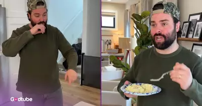 In the video’s opening moments, the Midwesterner arrives at the party with his hands full of food, including tons of dip, even though he was told not to bring anything with him.