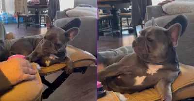 In a hilarious, laugh-out-loud clip, a French bulldog pup is captured being pampered. Its owner is actually giving the dog a foot rub. A lot of animals are lucky if they get any attention at all, and this guy is getting its feet attended to.