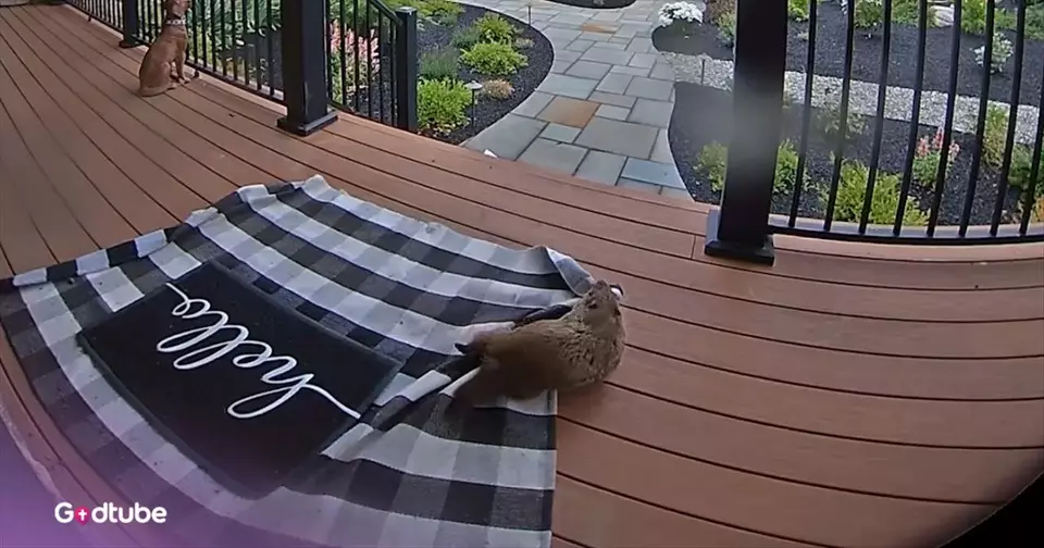 It’s unclear why the groundhogs weren’t successful, though. It seemed like it almost worked. At one point, the groundhog, who was interested in the mat, nearly made it off the porch with the item in its mouth. The pillow seems like it should not have given the animals much trouble either. Perhaps they ran out of energy and will need to refine their plan and tactics if they attempt this theft again.