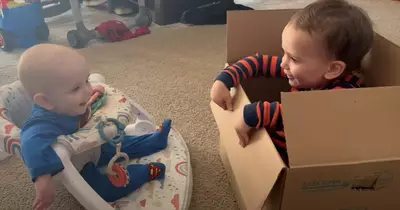 Check out these adorable little guys as they play peekaboo; it will make your day! Soon enough, these precious baby boys will be mischievous middle-schoolers. Soon enough, they will graduate from high school, marry, and start families. For now, though, they enjoy a cardboard box and sibling interaction. It is cuteness overload!