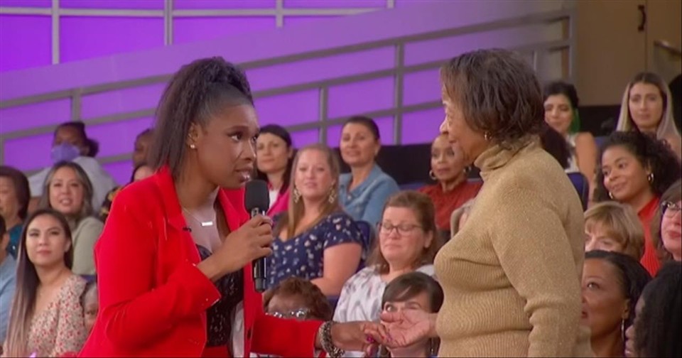 Jennifer now has a talk show called the Jennifer Hudson Show. At the start of the video, she goes up to an elderly woman in the audience. She asks how she is doing and says that she is a lovely butterfly and finds out that her name is Marilyn.