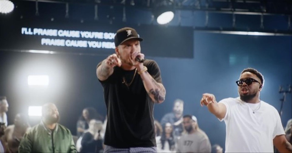 Chris Brown, wearing a baggy brown sweater and jeans, takes the second verse beginning at 1:15. He declares the power of praise in every situation, likening the activity of praise to a weapon. The lyrics reference the Battle of Jericho, in which the city’s walls tumbled to the ground after God directed the Israelites to march around Jericho’s walls while playing trumpets and shouting.