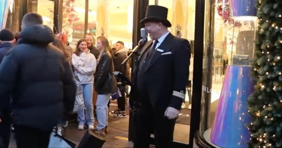 A doorman outside a store in Dublin, Ireland, used his musical talents to spread Christmas cheer as he sang a classic from the legendary Bing Crosby.