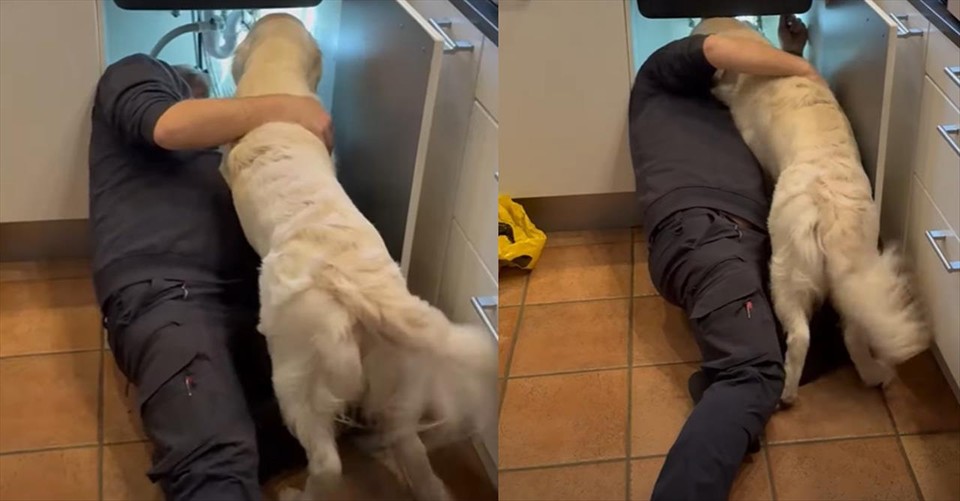 Sweet Pup Lends a Helping Paw to Plumber Fixing the Sink