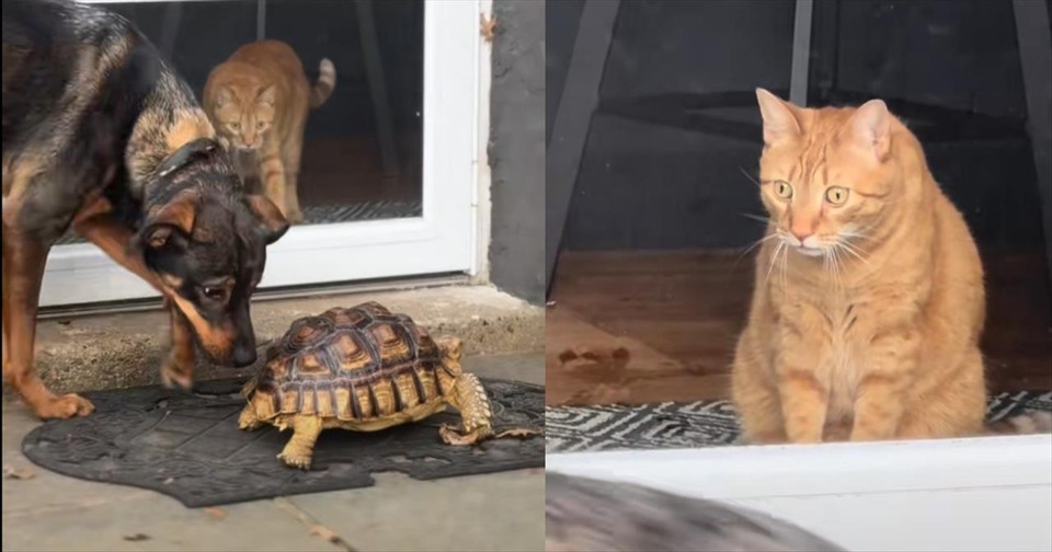 Cat Seeing a Tortoise for the First Time has Its Mind Blown