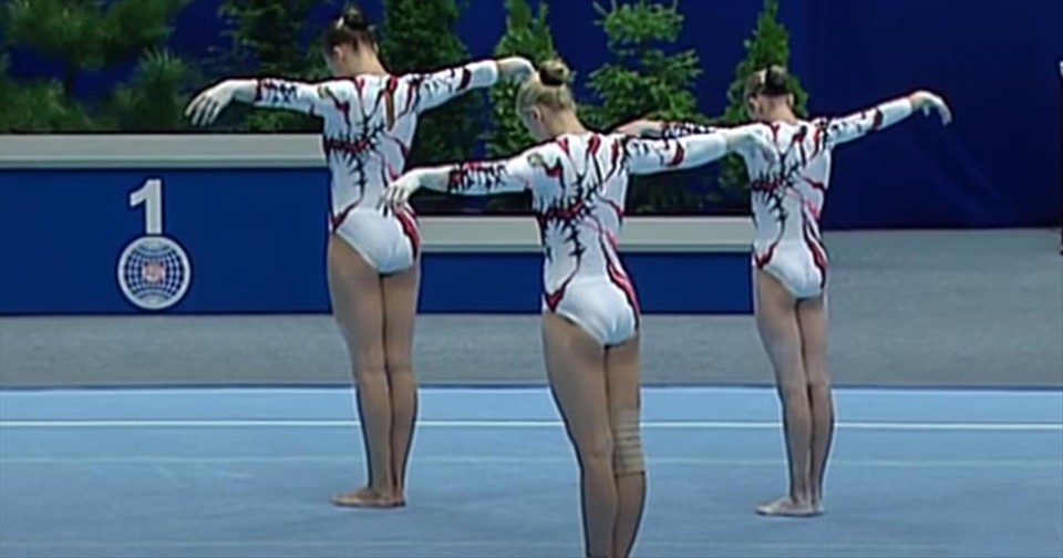Three acrobatic gymnasts are going viral after the world saw their mind-blowing synchronized routine. Gymnastics is one of the toughest sports on the planet. Not only does it take a lot of physical strength and stamina, top athletes dedicate multiple hours a day to perfect their routines and practice. From the balance beam to the floor routines, there is so much skill and precision that comes into every single move. It’s hard enough as an individual, but working together as a team in synchronization can be many times more difficult. But that is exactly what acrobatic gymnastics is all about. This competitive sport features partners or teams focusing on balance as they compete against other teams. A pair or group will take the floor and perform a skilled routine that can feature elements of balance and tumbling all set to music. Today’s famous routine features a trio of gymnasts from Ukraine as they compete at the 2010 World Championships in Wroclaw, Poland. From the moment they step onto the mat, these athletes leave the audience in awe with their unique balance pyramids and throws. They move is perfect sync and it’s truly mesmerizing from beginning to end. The talented group went on to place 3rd after Russia and Great Britain during the competition. But, after their routine was posted online, it quickly caught the attention of the world. Since their performance over a decade ago, the routine has garnered over 30 million views across social media and the number keeps growing. Who else was in awe of this incredible routine?